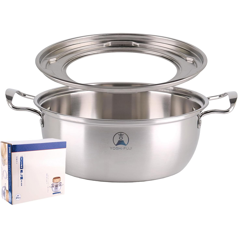 せいろ用蒸し鍋(蒸し板付き)¥3,255 蒸気の通りを確保しながら「せいろ 受け台」としての役割を果たし、変形や焦げ付きを防止。 IH対応の高耐久ステンレス製せいろ専用鍋は、直径24cmでガスコンロはもちろん、IH調理器に対応でガス・電気問わず使用可能。 在庫切れ 商品コード: BP-HXRU-Y5WH カテゴリー: 蒸し鍋 説明 追加情報 レビュー (0) 説明 IH対応24cmステンレス製蒸し鍋セット せいろの焦げを防いでスピーディーにふっくら蒸し上げる。 18・21・21cmの蒸籠対応 「せいろ 受け台」 IH対応 竹せいろ専用ステンレス製蒸鍋24cm 蒸板付き、蒸気の通りを確保しながら「せいろ 受け台」としての役割を果たし、変形や焦げ付きを防止 独自開発蒸籠用蒸板 蒸気孔17cm 18・21・24cmの蒸籠にぴったりサイズで調理中ずれにくい。 竹せいろの焦げ防止にもなります。 蒸板の蒸気孔のサイズが大きく変更のため、大量の蒸気が均等にいきわたります。 独自開発せいろ専用蒸鍋 鍋は直径サイズ24cm 家庭用IHに最適のサイズで、蒸気の加熱スピードは旧型より1.5倍速い。 多目的両手鍋 普段の調理にも使えます。 蒸し器と両手鍋の2つの機能を兼ね備えており、キッチンスペースを節約します。様々なお料理にも使えます。 使用後はスポンジなどに食器用洗剤を付けて、よく洗い早めに水気を拭き取って乾燥させてください。 追加情報 サイズ 奥行:24cm × 幅:24cm × 高さ:12cm 容量 300グラム 材質 ステンレス レビュー レビューはまだありません。 “せいろ用蒸し鍋(蒸し板付き)” の口コミを投稿します コメントをキャンセルメールアドレスが公開されることはありません。 ※ が付いている欄は必須項目です評価 * 評価… 最高 良好 平均 良くない 悪い レビュー *名前 * メール * 次回のコメントで使用するためブラウザーに自分の名前、メールアドレス、サイトを保存する。 Δ