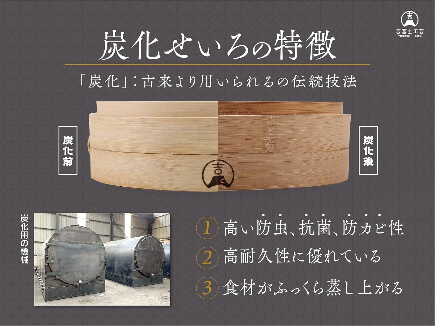炭化竹せいろ¥2,891 – ¥6,345価格帯: ¥2,891 – ¥6,345 日本の伝統技術「炭化」を用いた、ひとつひとつが人の手による、職人手作りの「せいろ」です。 サイズ 選択してください18cm21cm24cm オプション 選択してください鍋なし鍋付きクリア - 炭化竹せいろ個 + お買い物カゴに追加 商品コード: 該当なし カテゴリー: 炭化竹せいろ 説明 追加情報 レビュー (0) 説明 衛生調理器具だから、金属を使わず細部に至るまで、想いを形にした製品です。 [炭化することのメリット] 高い防虫・抗菌・防カビ性 高耐久性に優れている 食材がふっくら蒸し上がる ※日本基準で品質管理を行い、中国で生産しています。 追加情報 サイズ 18cm, 21cm, 24cm オプション 鍋なし, 鍋付き レビュー レビューはまだありません。 “炭化竹せいろ” の口コミを投稿します コメントをキャンセルメールアドレスが公開されることはありません。 ※ が付いている欄は必須項目です評価 * 評価… 最高 良好 平均 良くない 悪い レビュー *名前 * メール * 次回のコメントで使用するためブラウザーに自分の名前、メールアドレス、サイトを保存する。 Δ